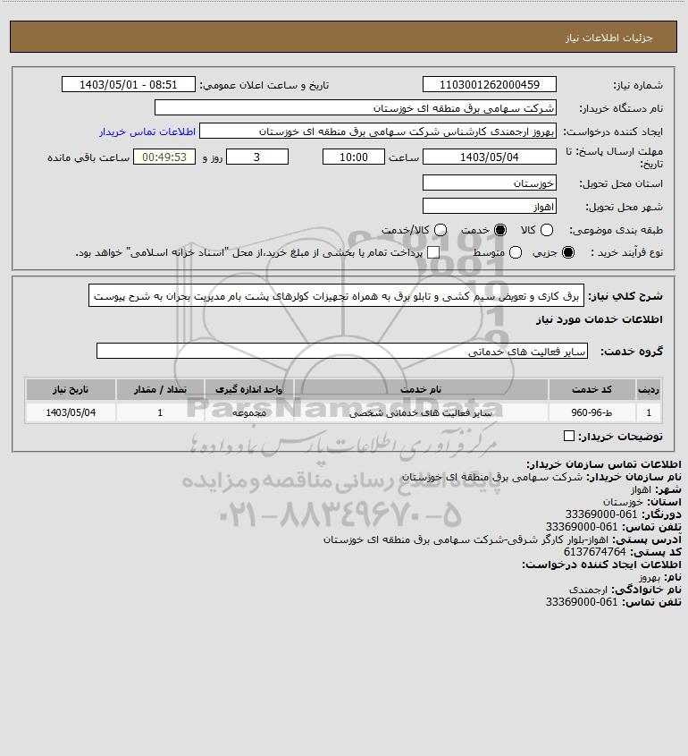نام دستگاه خریدار:شرکت سهامی برق منطقه ای خوزستان