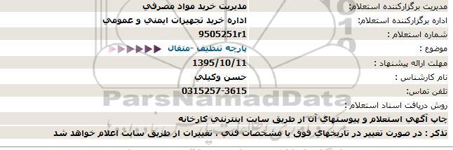 مدیریت برگزارکننده استعلام: مدیریت خرید مواد مصرفی