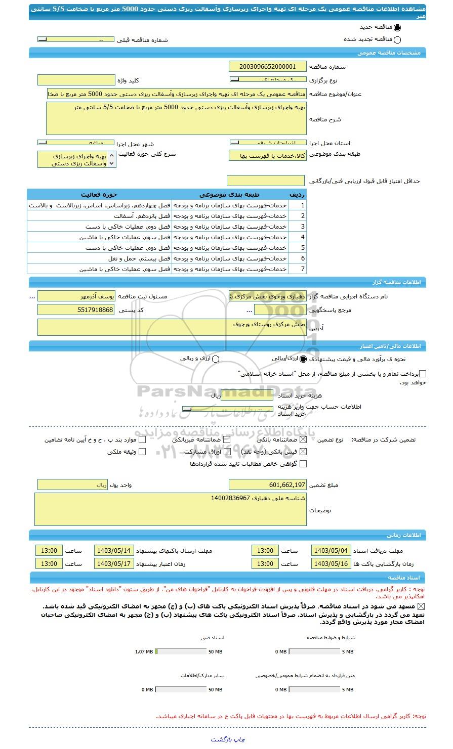 | مبلغ تضمین | 601,662,197 | واحد پول | ریال |