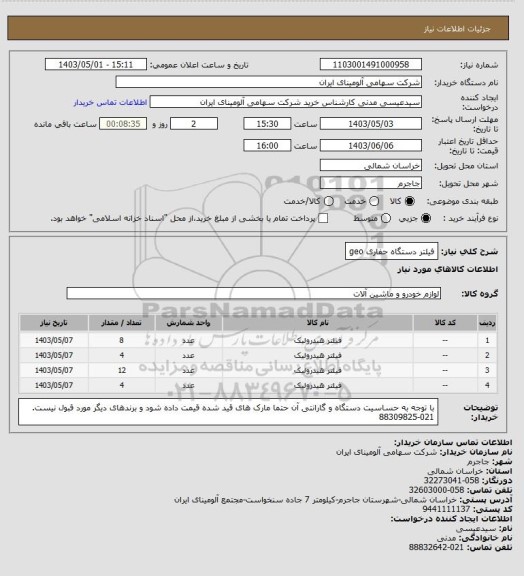 استعلام فیلتر دستگاه حفاری geo, استعلام فیلتر دستگاه حفاری geo