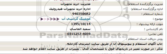 استعلام کوپلینگ گردشی آب , استعلام , استعلام کوپلینگ گردشی آب