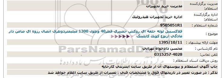 اداره برگزارکننده استعلام: اداره خرید تجهیزات هیدرولیک