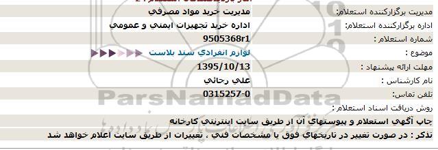 استعلام لوازم انفرادی سند بلاست , استعلام , استعلام لوازم انفرادی سند بلاست