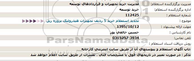 موضوع : تجدید استعلام خرید 5 ردیف تجهیزات هیدرولیک مربوط به پروژه ریل