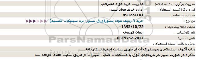 استعلام خرید 3 ردیف مواد نسوز(ورق نسوز- برد سیلیکات کلسیم) , استعلام خرید 3 ردیف مواد نسوز(ورق نسوز- برد سیلیکات کلسیم)