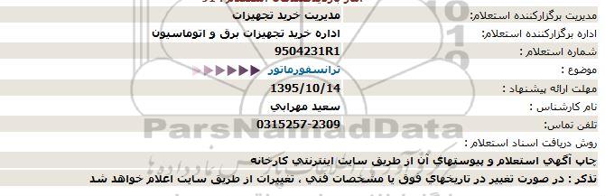 اداره برگزارکننده استعلام: اداره خرید تجهیزات برق و اتوماسیون