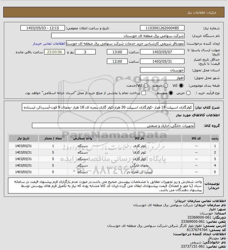 نام دستگاه خریدار:شرکت سهامی برق منطقه ای خوزستان