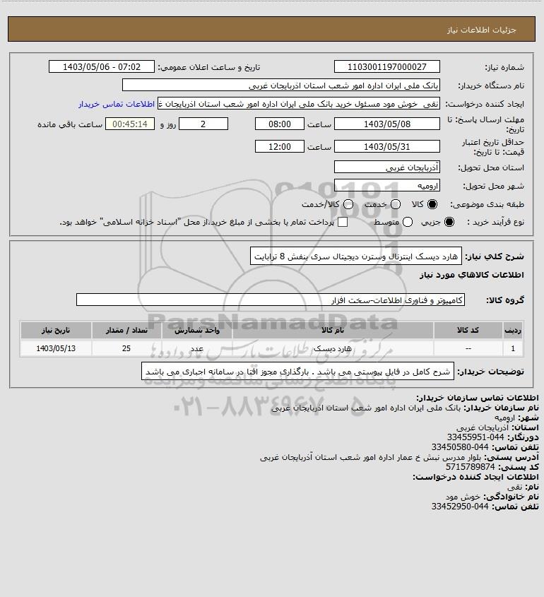 نام دستگاه خریدار:بانک ملی ایران اداره امور شعب استان اذربایجان غربی