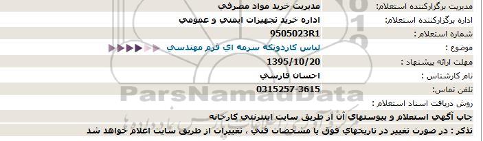 اداره برگزارکننده استعلام: اداره خرید تجهیزات ایمنی و عمومی