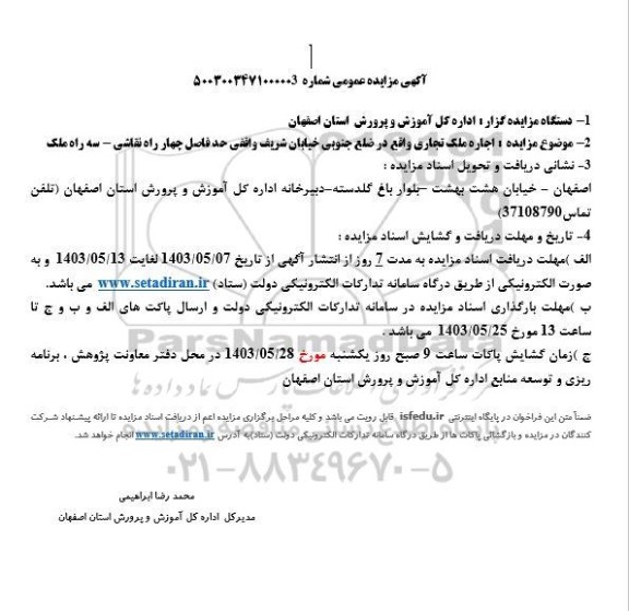 دستگاه مزایده گزار: اداره کل آموزش و پرورش استان اصفهان