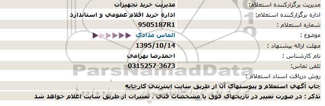 اداره برگزارکننده استعلام:  اداره خرید اقلام عمومی و استاندارد