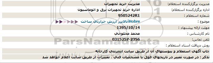 اداره برگزارکننده استعلام: اداره خرید تجهیزات برق و اتوماسیون