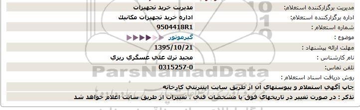 اداره برگزارکننده استعلام:  اداره خرید تجهیزات مکانیک