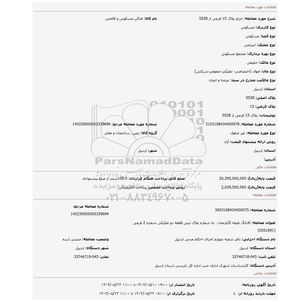 مزایده، پلاک 15 فرعی از 5528, مزایده، پلاک 15 فرعی از 5528