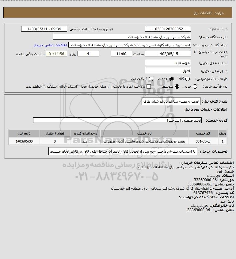 نام دستگاه خریدار:شرکت سهامی برق منطقه ای خوزستان