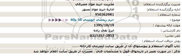استعلام جرم ریختنی آلومینیومی 50 و 60, استعلام , استعلام جرم ریختنی آلومینیومی 50 و 60