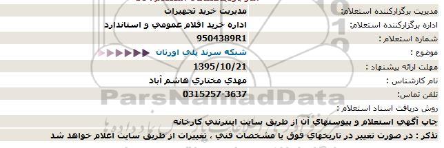 اداره برگزارکننده استعلام: اداره خريد اقلام عمومي و استاندارد