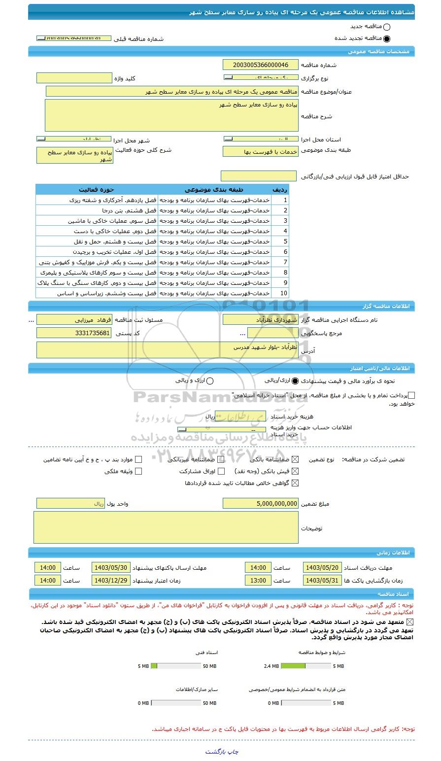 | مبلغ تضمین | 5,000,000,000 | واحد پول | ریال |