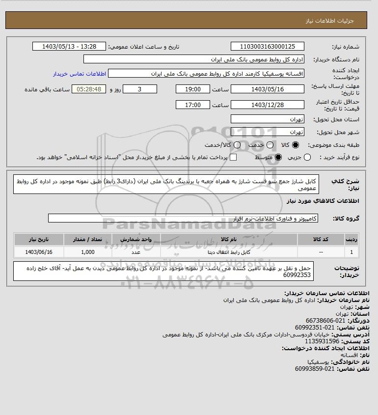 استعلام کابل شارژ جمع شو فست شارژ به همراه جعبه با برندینگ بانک ملی ایران (دارای3 رابط) طبق نمونه موجود در اداره کل روابط عمومی, استعلام کابل شارژ جمع شو فست شارژ به همراه جعبه با برندینگ بانک ملی ایران (دارای3 رابط) طبق نمونه موجود در اداره کل روابط عمومی