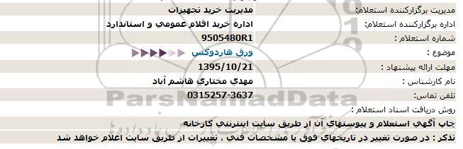 اداره برگزارکننده استعلام:     اداره خرید اقلام عمومی و استاندارد
