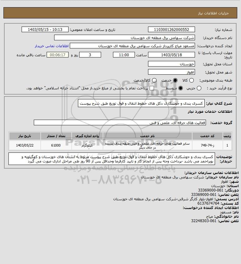 نام سازمان خریدار: شرکت سهامی برق منطقه ای خوزستان