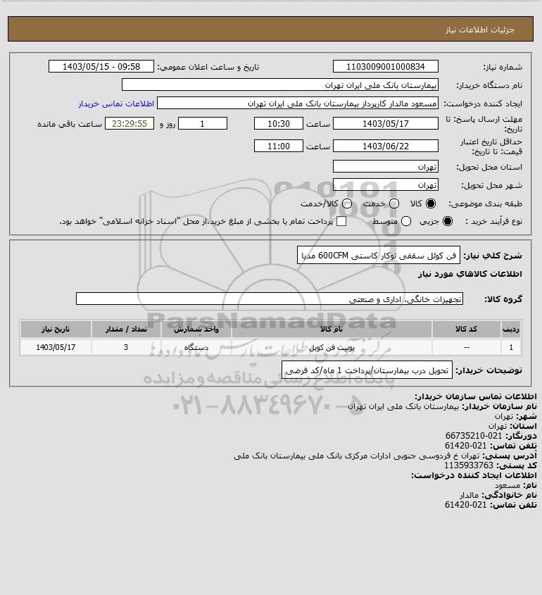 نام دستگاه خریدار:بیمارستان بانک ملی ایران تهران