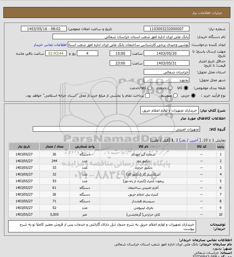 نام دستگاه خریدار:بانک ملی ایران اداره امور شعب استان خراسان شمالی