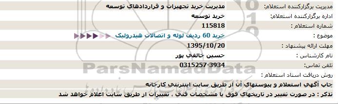 موضوع : خرید 60 ردیف لوله و اتصالات هیدرولیک