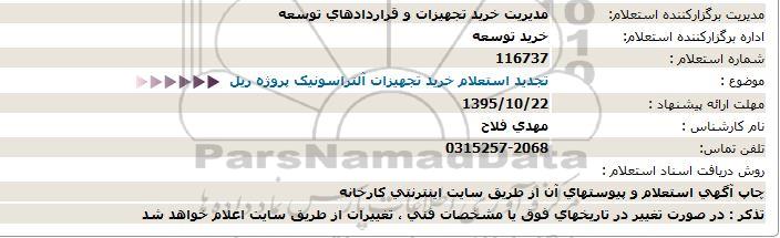 موضوع : تجدید استعلام خرید تجهیزات دستگاه آلتراسونیک پروژه ریل