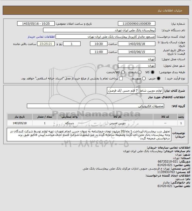 | 1 | -- | دوربین امنیتی | دستگاه | 1 | 1403/05/18 |