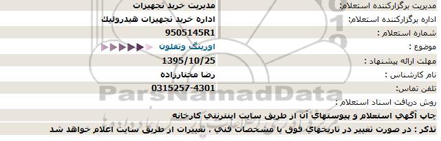 اداره برگزارکننده استعلام: اداره خرید تجهیزات هیدرولیک
