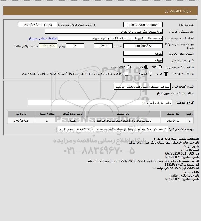 نام دستگاه خریدار:بیمارستان بانک ملی ایران تهران