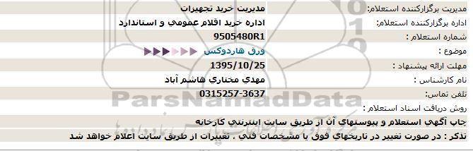 اداره برگزارکننده استعلام: اداره خرید اقلام عمومی و استاندارد