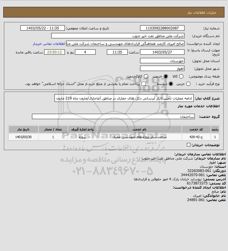 استعلام ادامه عملیات تآمین تانکر آبرسانی دکل های حفاری در مناطق آغاجاری/مارون چاه 219 مارون, استعلام ادامه عملیات تآمین تانکر آبرسانی دکل های حفاری در مناطق آغاجاری/مارون چاه 219 مارون