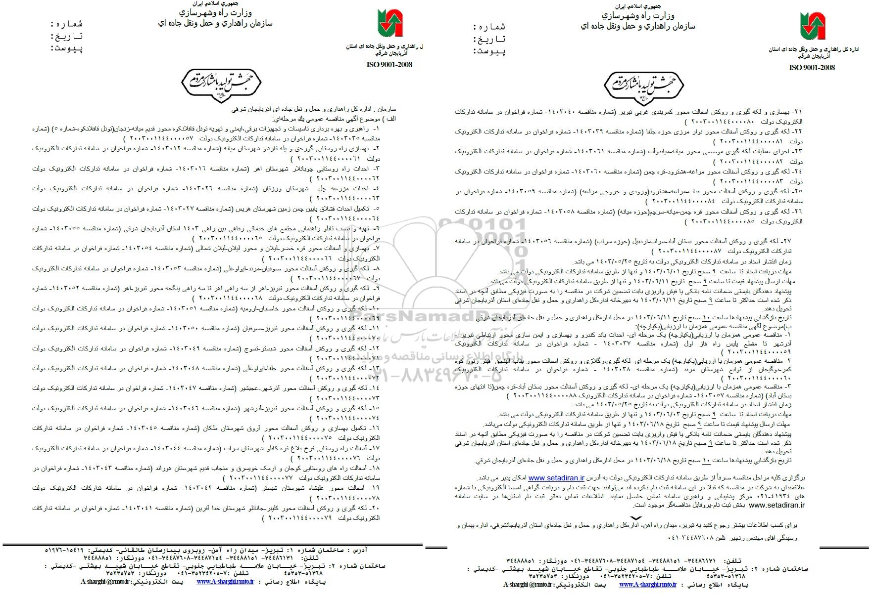 9- لکه گیری و روکش آسفالت محور تبریز-اهر از سه راهی اهر تا سه راهی ینگجه محور تبریز هر شماره) مناقصه 1403052- شماره فراخوان در سامانه تدارکات الکترونیک دولت 20030011440000068  )
