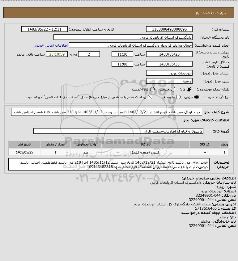 نام دستگاه خریدار:دادگستری استان اذربایجان غربی