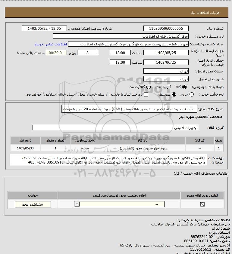 استعلام سامانه مدیریت و نظارت بر دسترسی های ممتاز (PAM) جهت استفاده 20 کاربر همزمان, استعلام سامانه مدیریت و نظارت بر دسترسی های ممتاز (PAM) جهت استفاده 20 کاربر همزمان