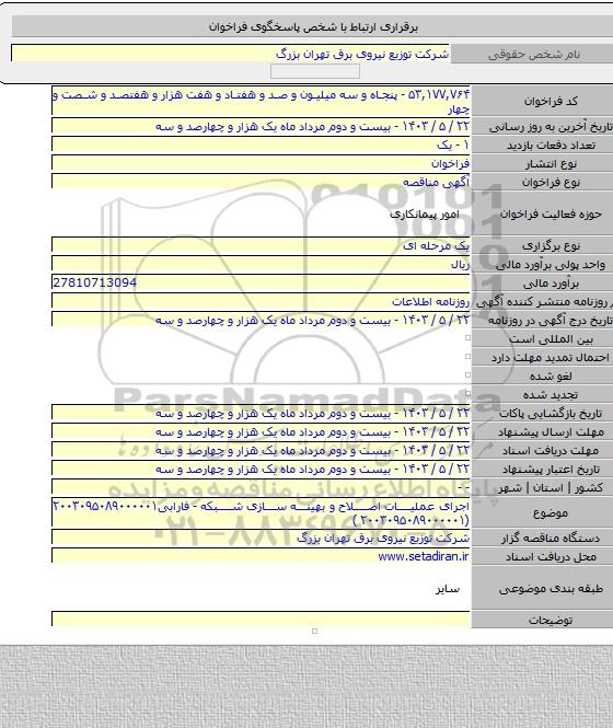 برای شرکت در مناقصه حتما از تصویر آگهی در سایت پارس نماد داده ها استفاده نمایید