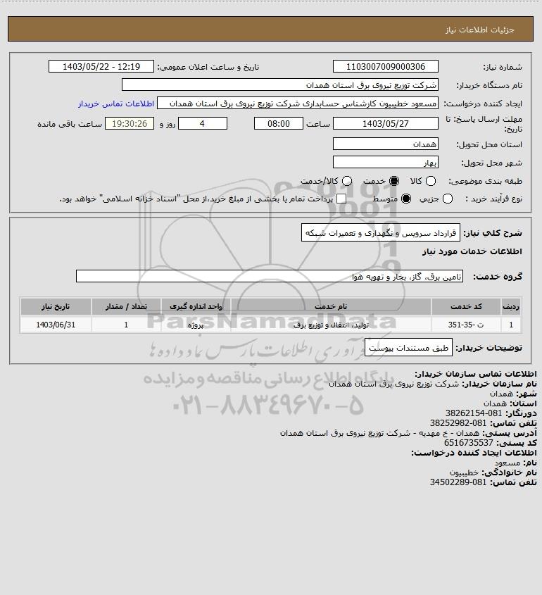 نام دستگاه خریدار:شرکت توزیع نیروی برق استان همدان