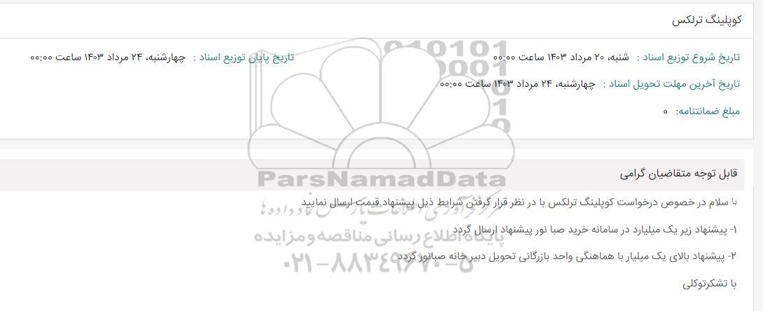 برای شرکت در مناقصه حتما از تصویر آگهی در سایت پارس نماد داده ها استفاده نمایید