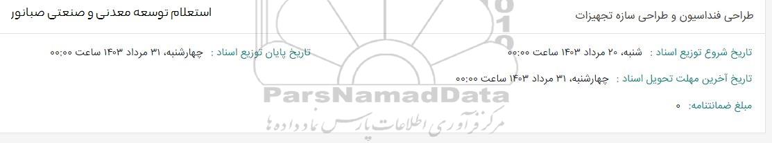 تاریخ پایان توزیع اسناد: چهارشنبه 31 مرداد 1403 ساعت 00:00