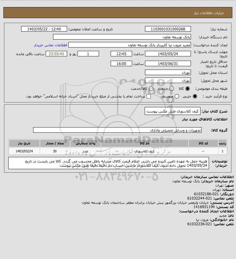 | 1 | -- | کیف کلاسوری | عدد | 30 | 1403/05/24 |