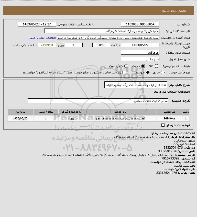 شرح کلی نیاز: نقشه برداری واخذ اسناد تک برگ درشهر تازیان