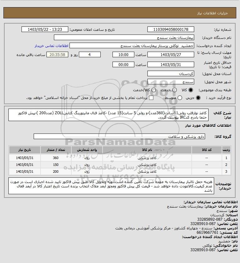 | 2 | -- | کاغذ پزشکی | رول | 150 | 1403/05/31 |
