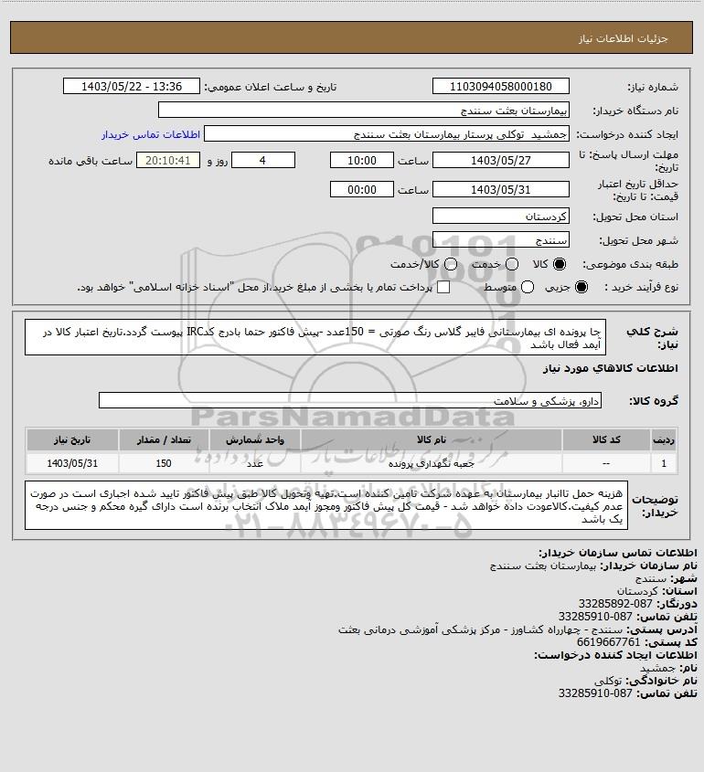 نام دستگاه خریدار:بیمارستان بعثت سنندج