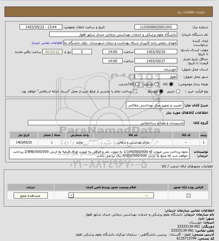نام دستگاه خریدار:دانشگاه علوم پزشکی و خدمات بهداشتی درمانی جندی شاپور اهواز