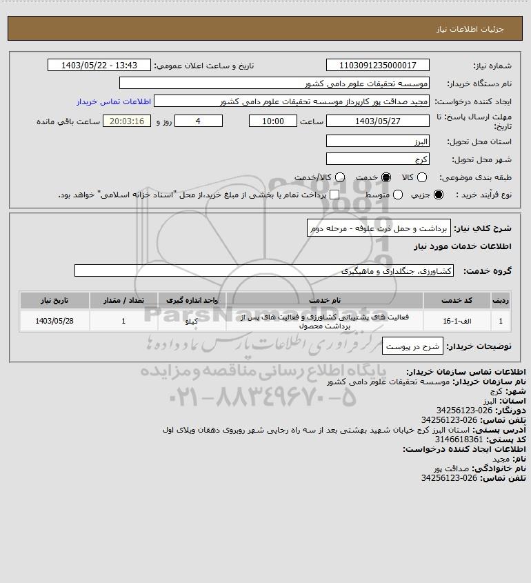 نام دستگاه خریدار:موسسه تحقیقات علوم دامی کشور