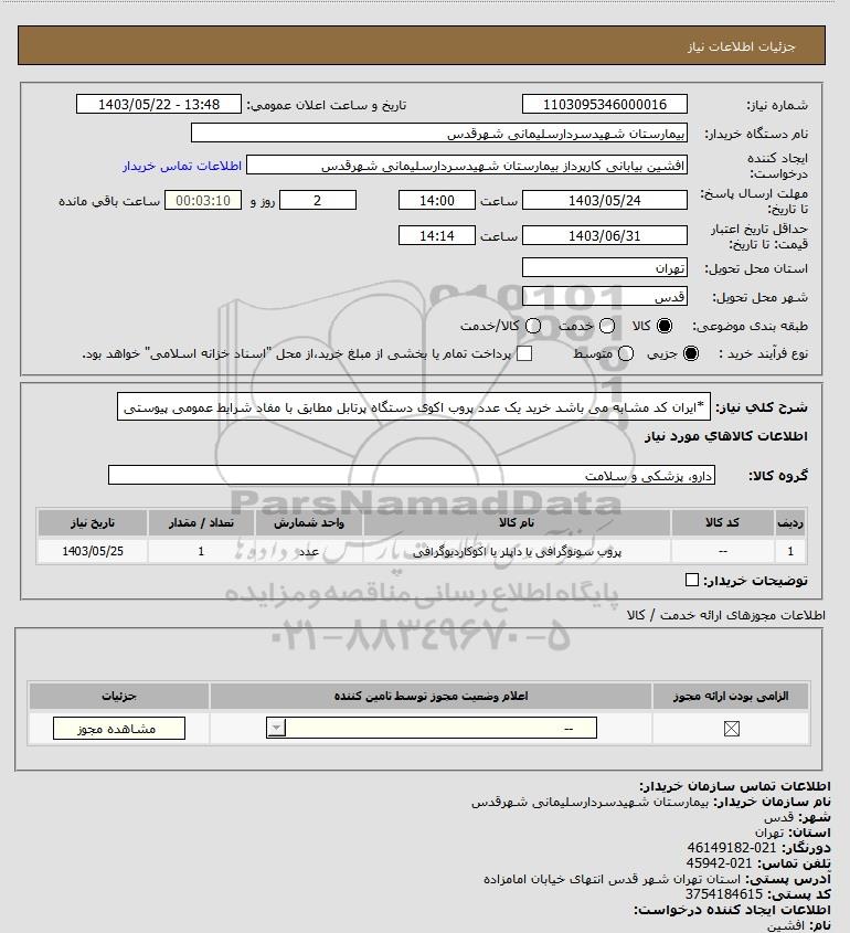 خرید یک عدد پروب اکوی دستگاه پرتابل مطابق با مفاد شرایط عمومی پیوستی