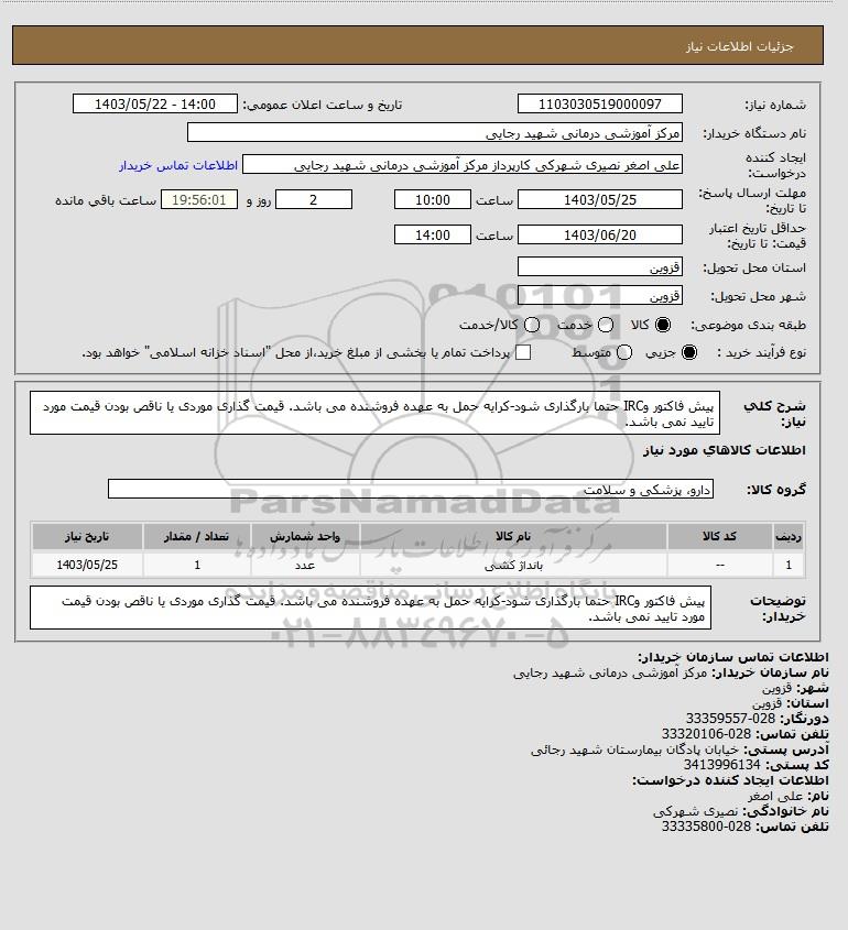 نام دستگاه خریدار:مرکز آموزشی درمانی شهید رجایی
