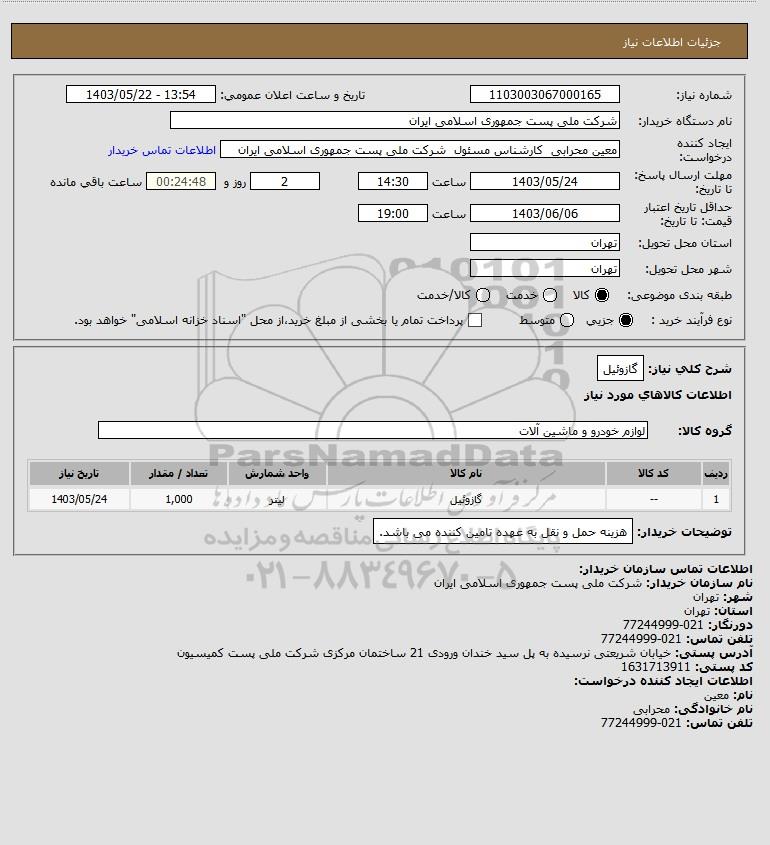 1 -- گازوئیل لیتر 1,000 1403/05/24